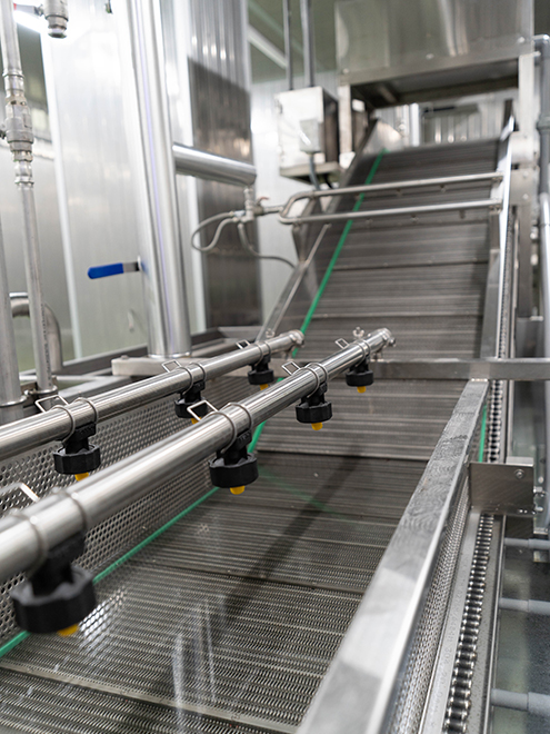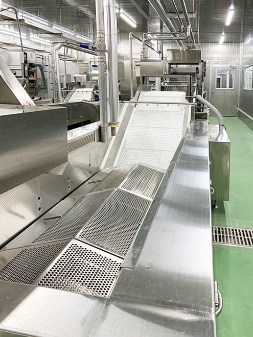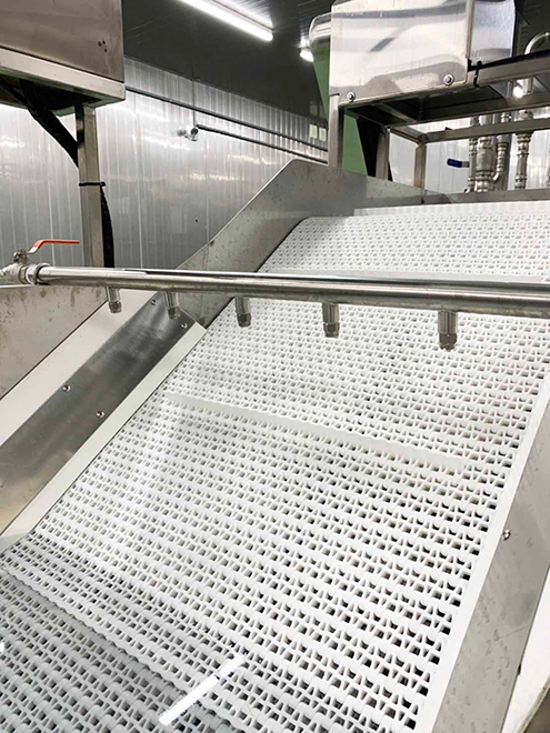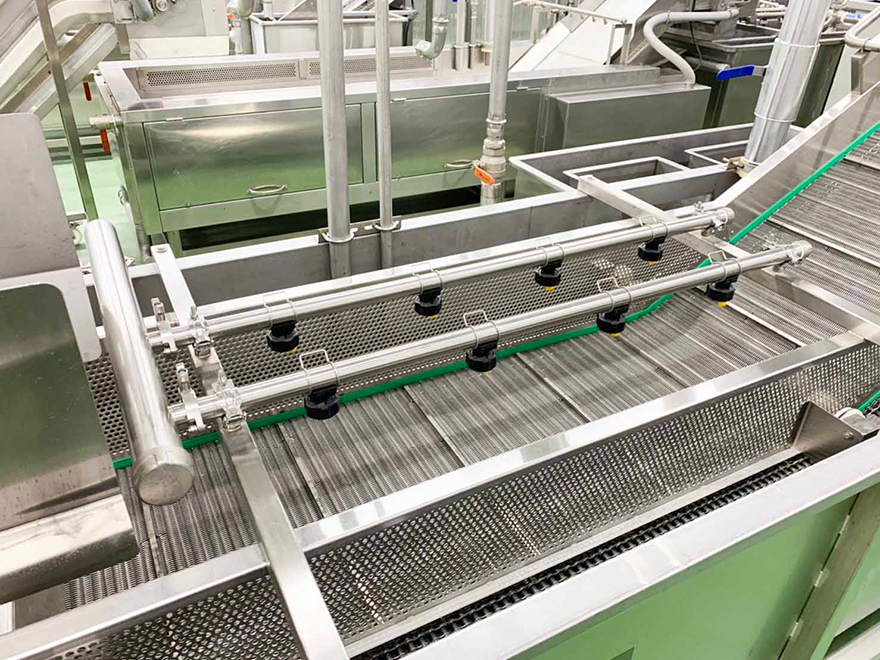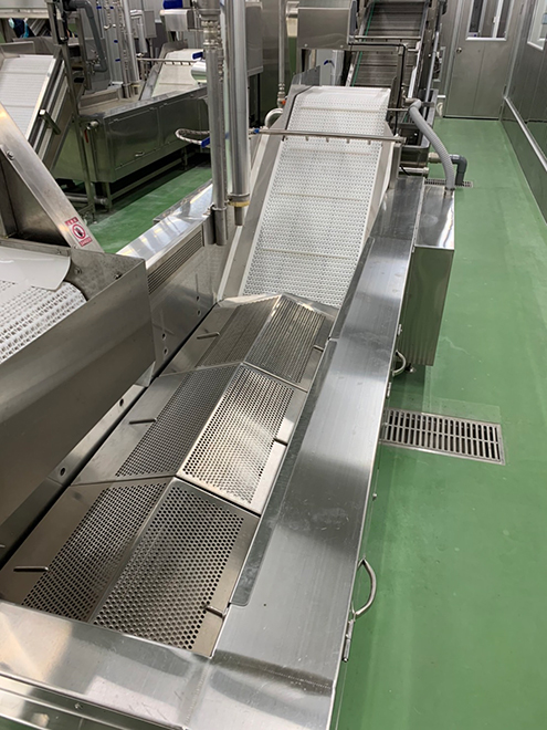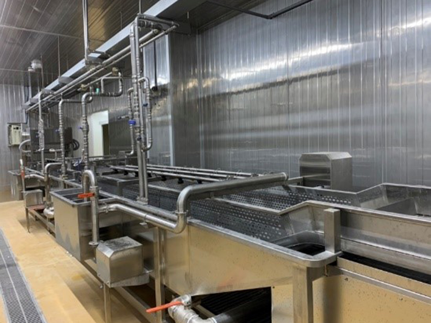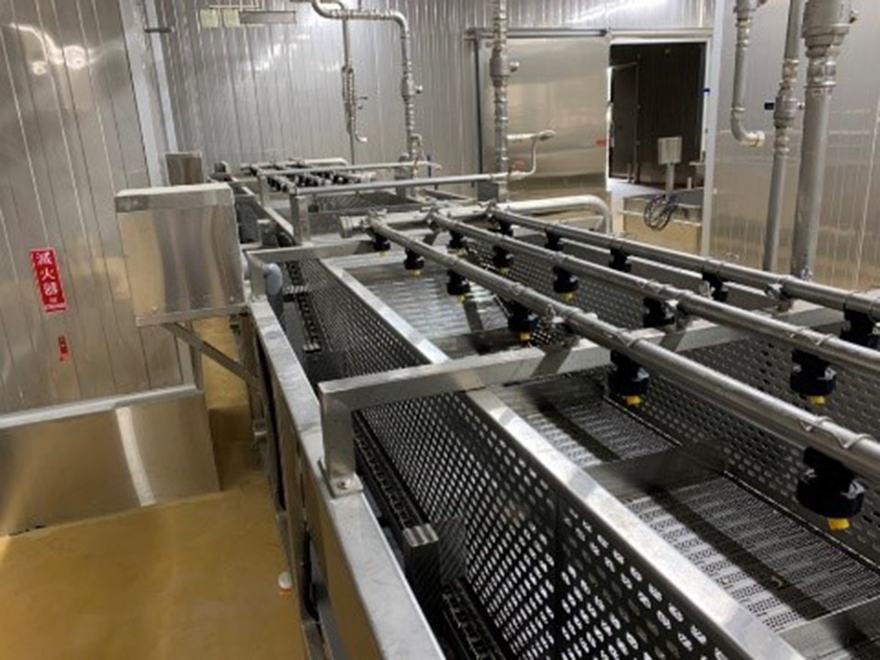 全程三槽皆使用冰水系統,使清洗用水保持低度恆溫,使產品保鮮度提高進而延長保存期限。