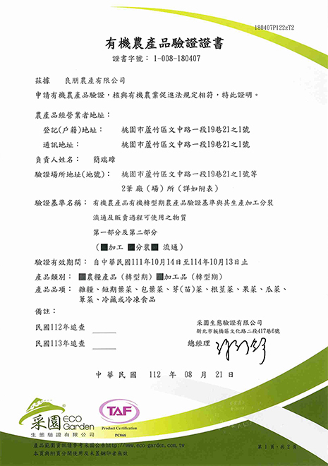 有機蔬菜證照